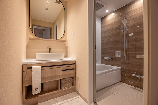 本館 スカイレジデンスルーム 水回りはバスルームとシャワーブースが各1室。独立洗面台とトイレが各2室。